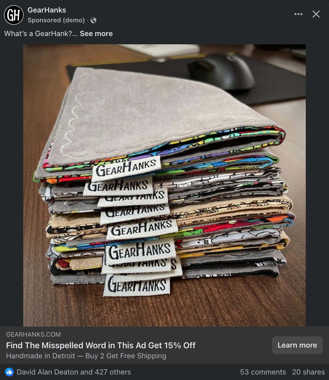 “We don’t recommend blowing your nose in a GearHank… they’re too nice for that!”